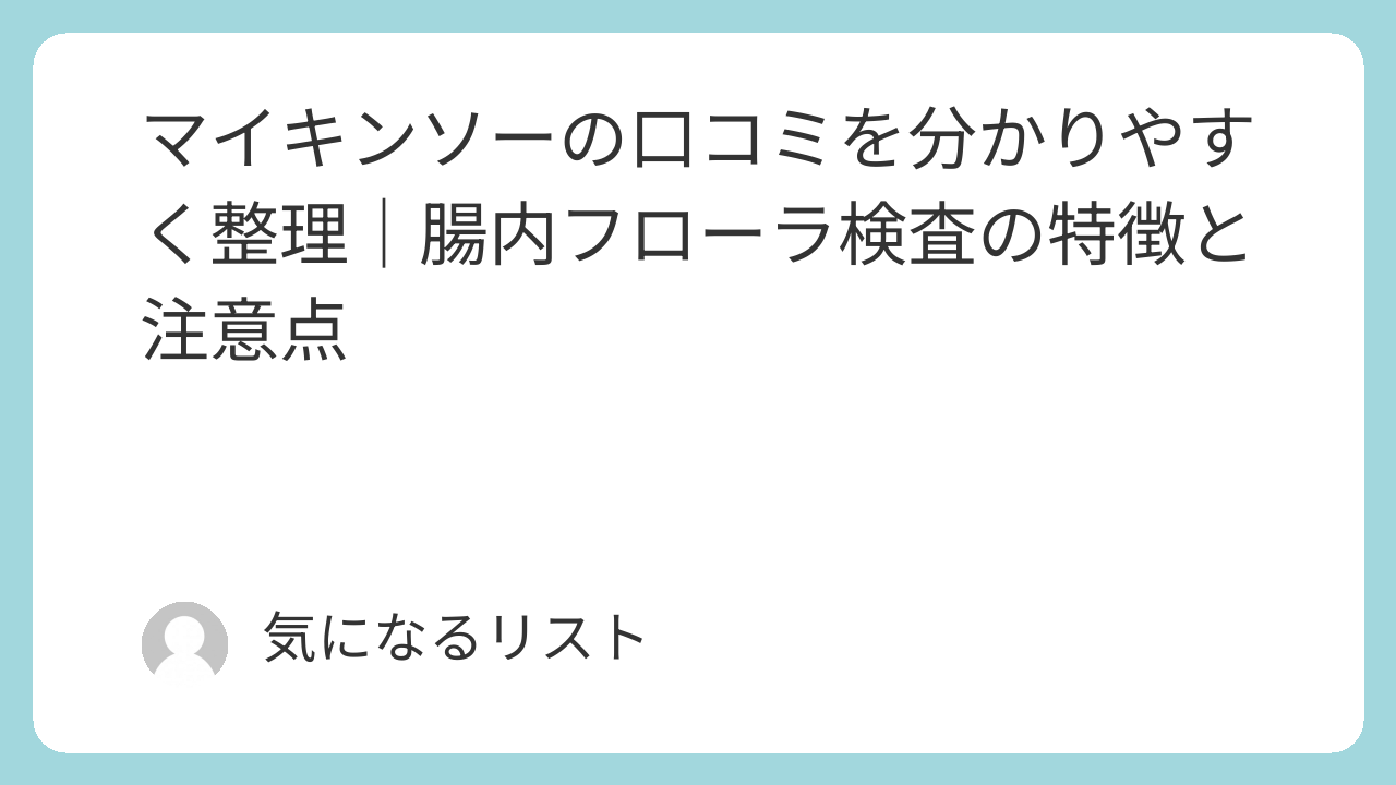 マイキンソー(Mykinso)は手軽さが魅力の腸内フローラ検査ですが、どんなサービスにも事前に知っておきたいポイントがあります。