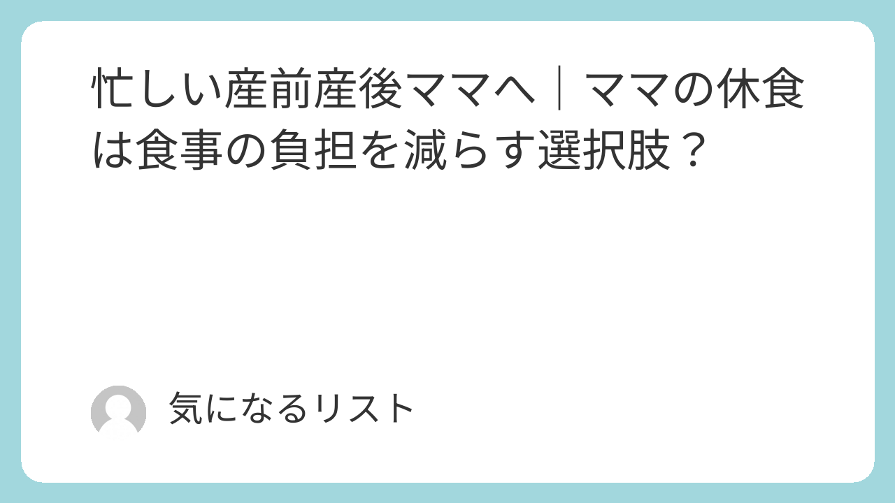 ここでは、ママの休食を検討する際に見ておくと判断しやすい視点を整理します。