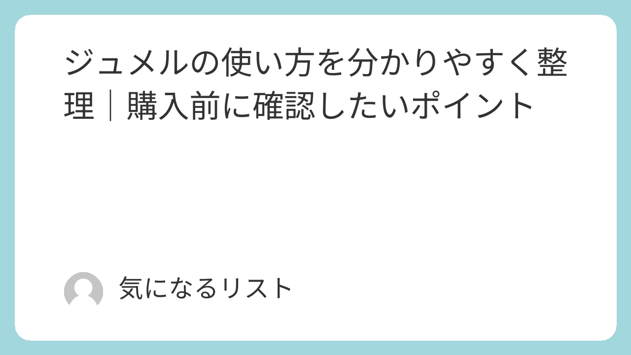 この記事では、ジュメルの使い方を中心に、購入前に確認しておきたい考え方や注意点を分かりやすく整理しています。
