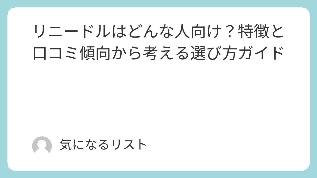 この記事では、ネット上で語られている口コミの傾向をヒントにしながら、リニードルの特徴や考え方、使い方のポイント、注意しておきたい点を分かりやすく整理しています。