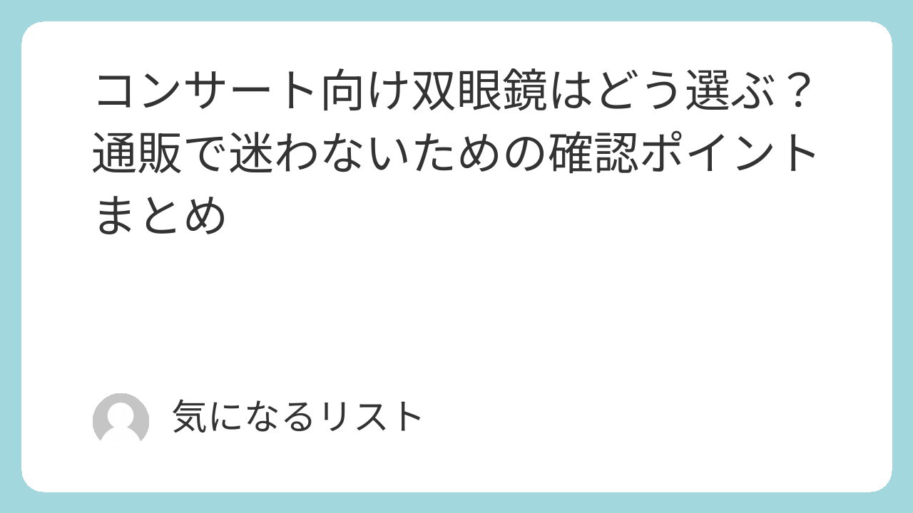 こうした点から、コンサート用双眼鏡はスペックの数値だけでなく、使う場面を想定した設計かどうかが判断材料になりやすいと考えられています。