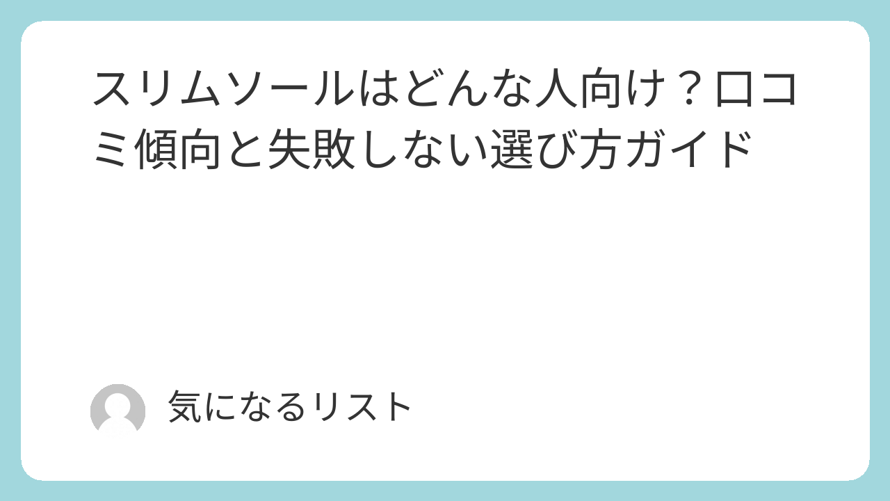 この記事では、スリムソールが向いている人の目安や、ネット上で語られている使用感の傾向、購入前に確認しておきたいポイントを分かりやすくまとめています。