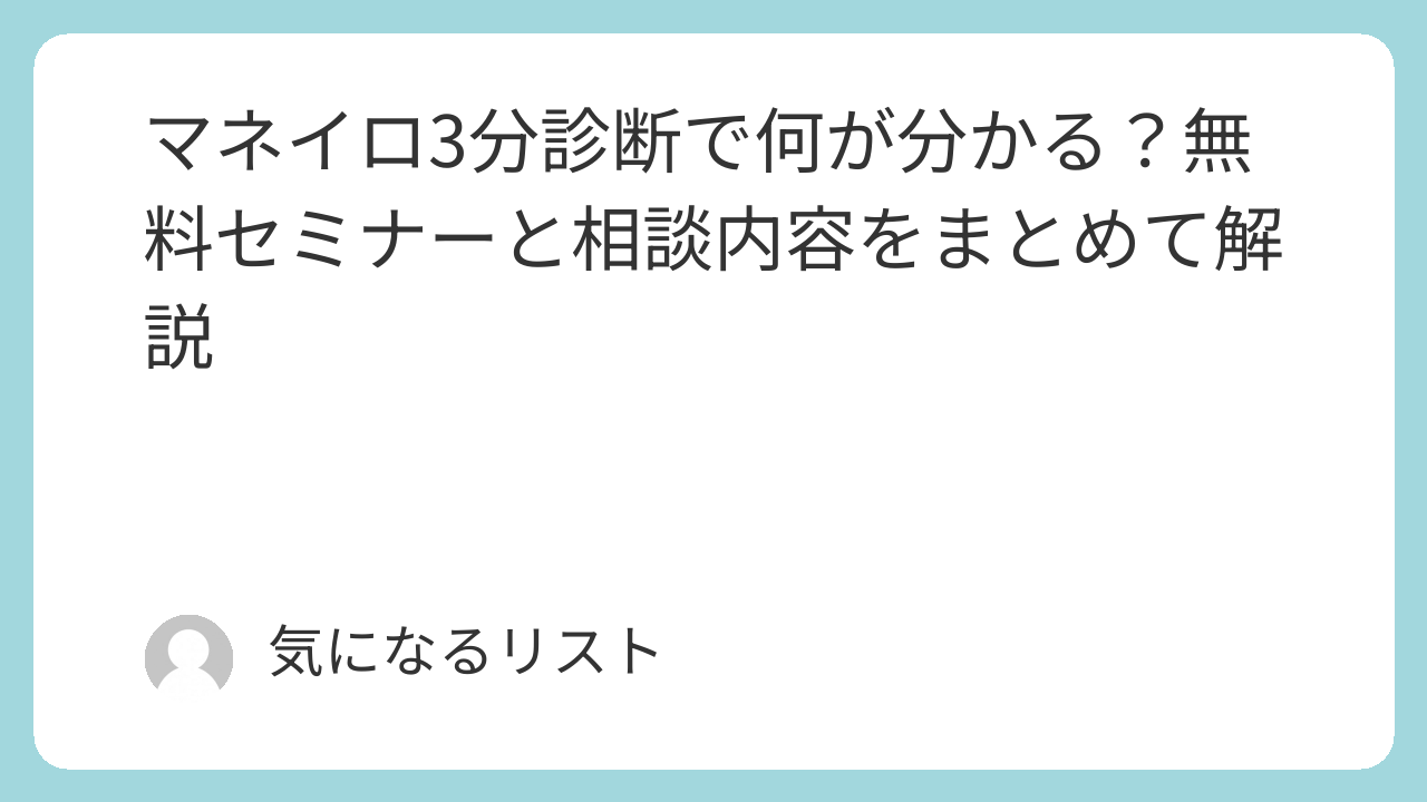 ここまで、マネイロの3分診断やセミナー。 個別相談の内容について見てきました。