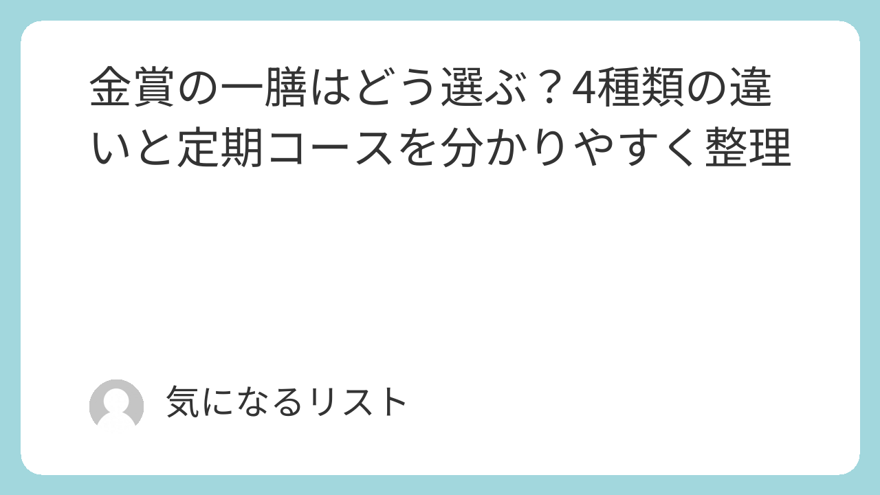 この記事では、金賞の一膳について、4種類の違いを使う場面ごとに整理しながら、定期コースを検討する前に知っておきたいポイントをまとめています。