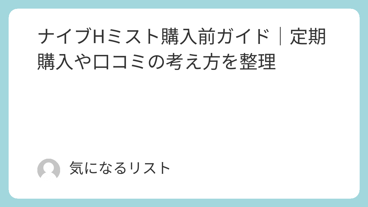 この記事では、ナイブHミストを購入前に検討している方に向けて、定期購入の考え方や解約のポイント、口コミの受け取り方などを分かりやすく整理しています。
