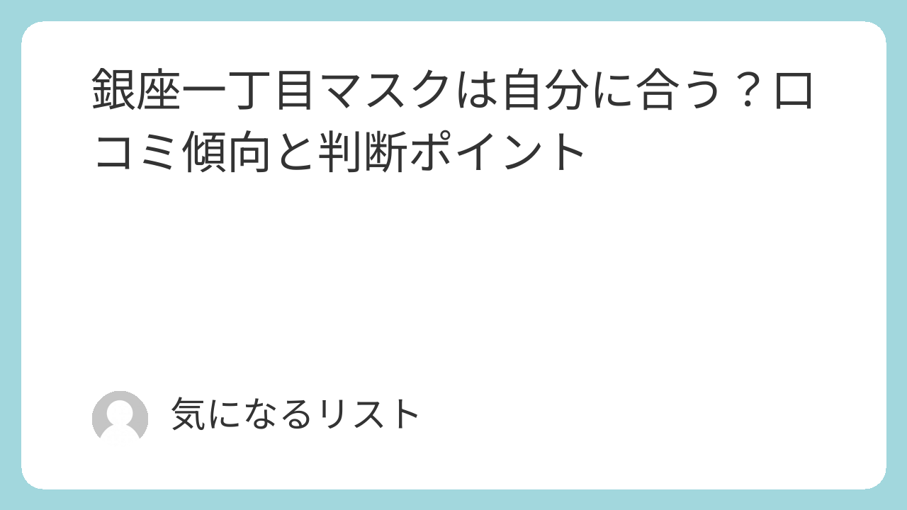 この記事では、銀座一丁目マスクについてネット上で語られている傾向や、購入前に整理しておきたい考え方を中心にまとめています。
