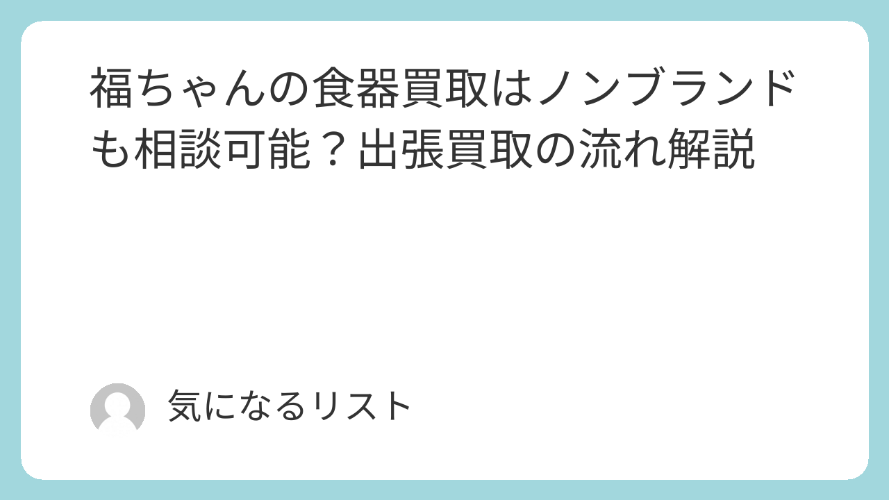 この記事では、福ちゃんの食器買取がノンブランド品にどう対応しているのかを軸に、出張買取の流れや利用前に確認しておきたい注意点を分かりやすく整理しました。