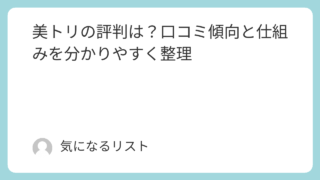 美容 美トリの評判は?口コミ傾向と仕組みを分かりやすく整理 美トリの評判が気になる方へ。ネット上の口コミ傾向や仕組み、向き不向きを分かりやすく整理しました。忙しい30~40代女性が、自分に合うかどうかを落ち着いて判断するための情報をまとめています。公式サイトを確認する前の参考にもどうぞ。 美容